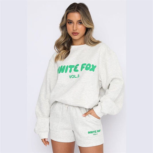 2 Piece Black @ Fox @ Boutique Womens Top Tracksuits Shirts Shorts Pants Set UK