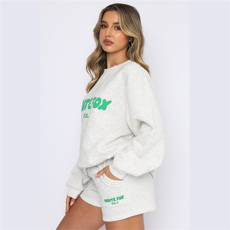 2 Piece Black @ Fox @ Boutique Womens Top Tracksuits Shirts Shorts Pants Set UK