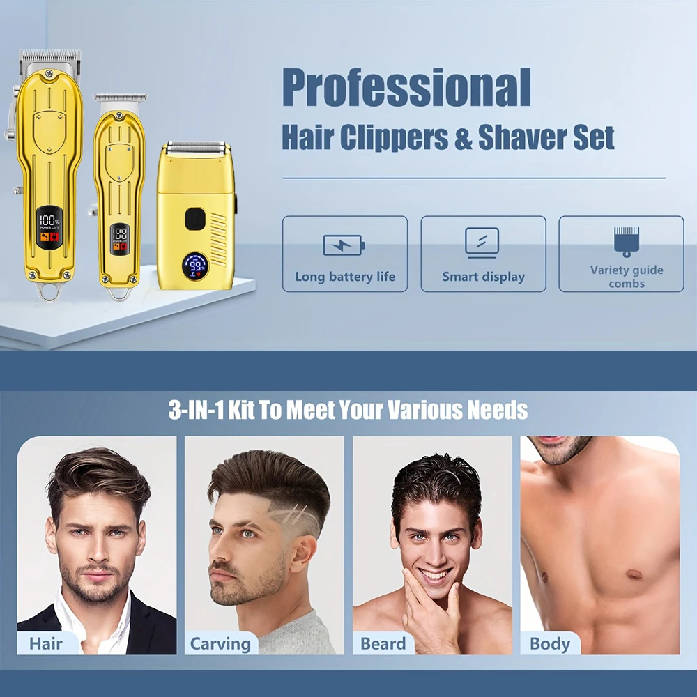 3 in 1 Professional Hair Clippers Electric Razor Shavers for Men USB Rechargeable Clippers and Trimmers Beard Trimmer Barber Kit