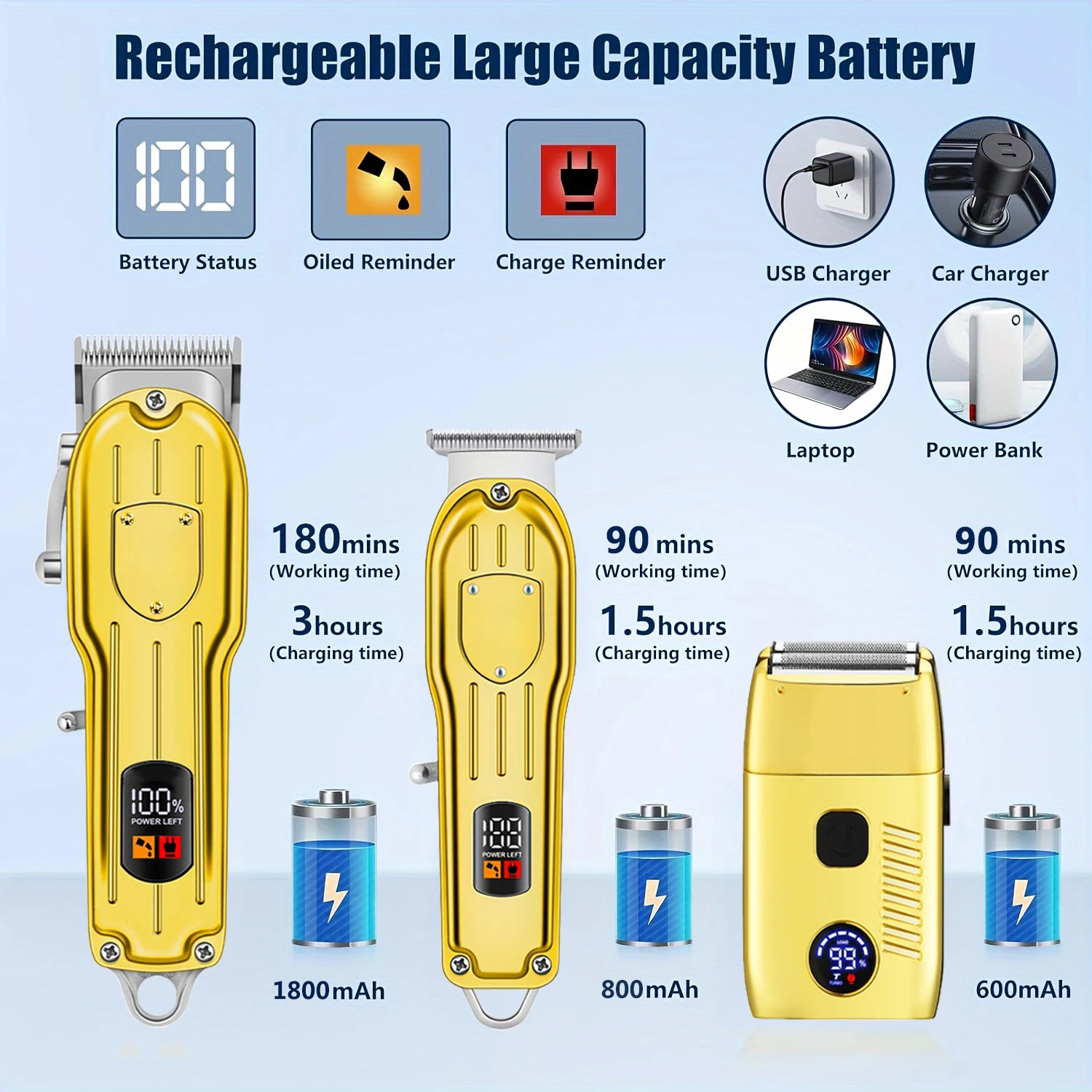 Function: wet haircut,dry haircut,Fast Charging,Charging indication