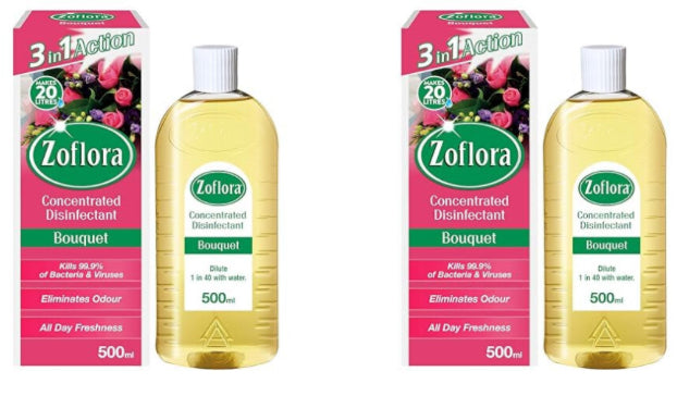 Zoflora Bouquet 500ml, Concentrated Antibacterial Disinfectant, All Purpose Cleaner, Surface Cleaning Solution, Kills Bacteria and Viruses (Pack 2)